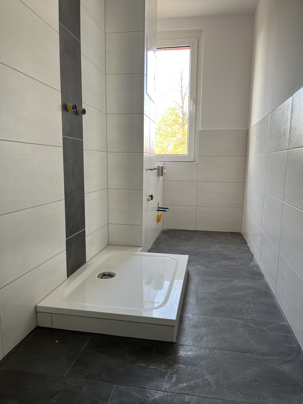 Aufwändig saniert, modernes Tageslichtbad mit Dusche, weiße Zimmertüren, helle Räume – Raufaser weiß tapeziert, Designfußboden in allen Wohnräumen, Kellerabteil, moderne Heiztechnik für niedrige Betriebskosten