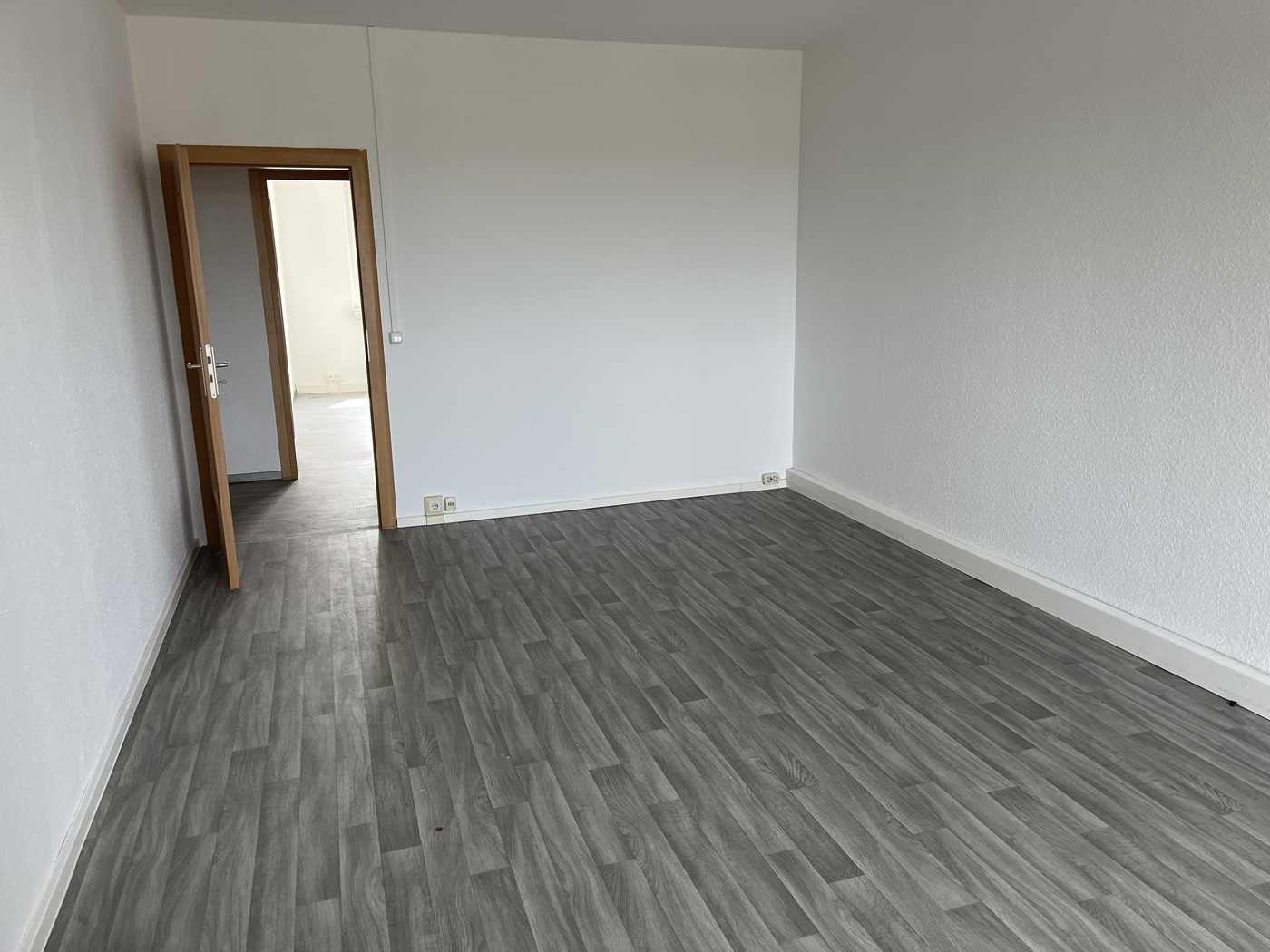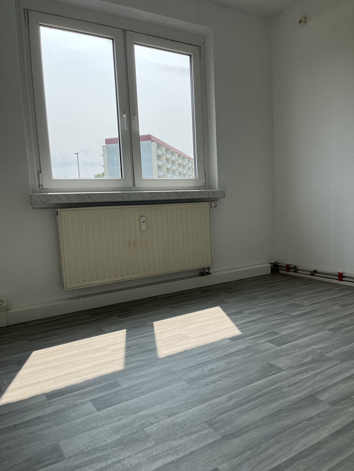 mit großzügigem Balkon, helle Räume sind mit Raufaser weiß tapeziert, grauer moderner PVC Belag, Kellerabteil und Fahrradabstellmöglichkeit, moderne Heiztechnik für niedrige Betriebskosten